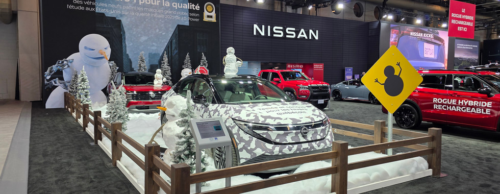 Chez Nissan, on nous offre la gamme Nismo, représentée par l’Armada Nismo et la Z Nismo. Dans un décor hivernal, la Nissan Leaf de nouvelle génération est mise en avant, avec une voiture complètement nouvelle et un design bien différent, tout comme la Nissan Sentra 2026, qui elle aussi est entièrement revue et qui saura plaire à la clientèle. Bien sûr, il est impossible de passer outre le tout nouveau Rogue PHEV (qui nous laisse paraître quelques airs de famille avec le Mitsubishi Outlander PHEV), qui fait une première apparition chez nous, au Canada.